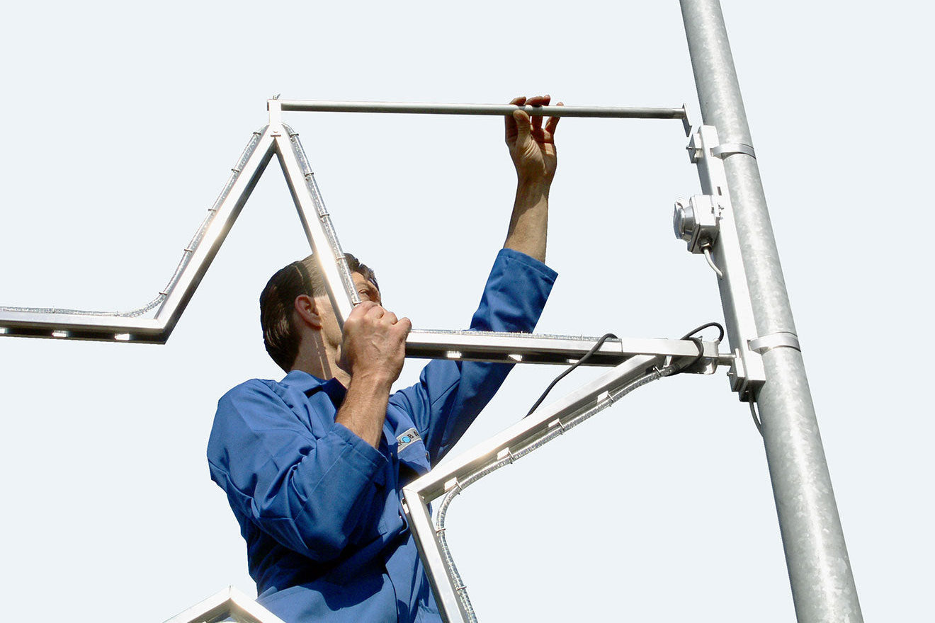 Unsere LED-Weihnachtsbeleuchtung überzeugt durch einfache Montage an Kandelabern und minimalen Pflegeaufwand.
