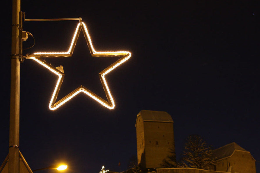 Unsere LED-Weihnachtsbeleuchtung überzeugt durch einfache Montage an Kandelabern und minimalen Pflegeaufwand.