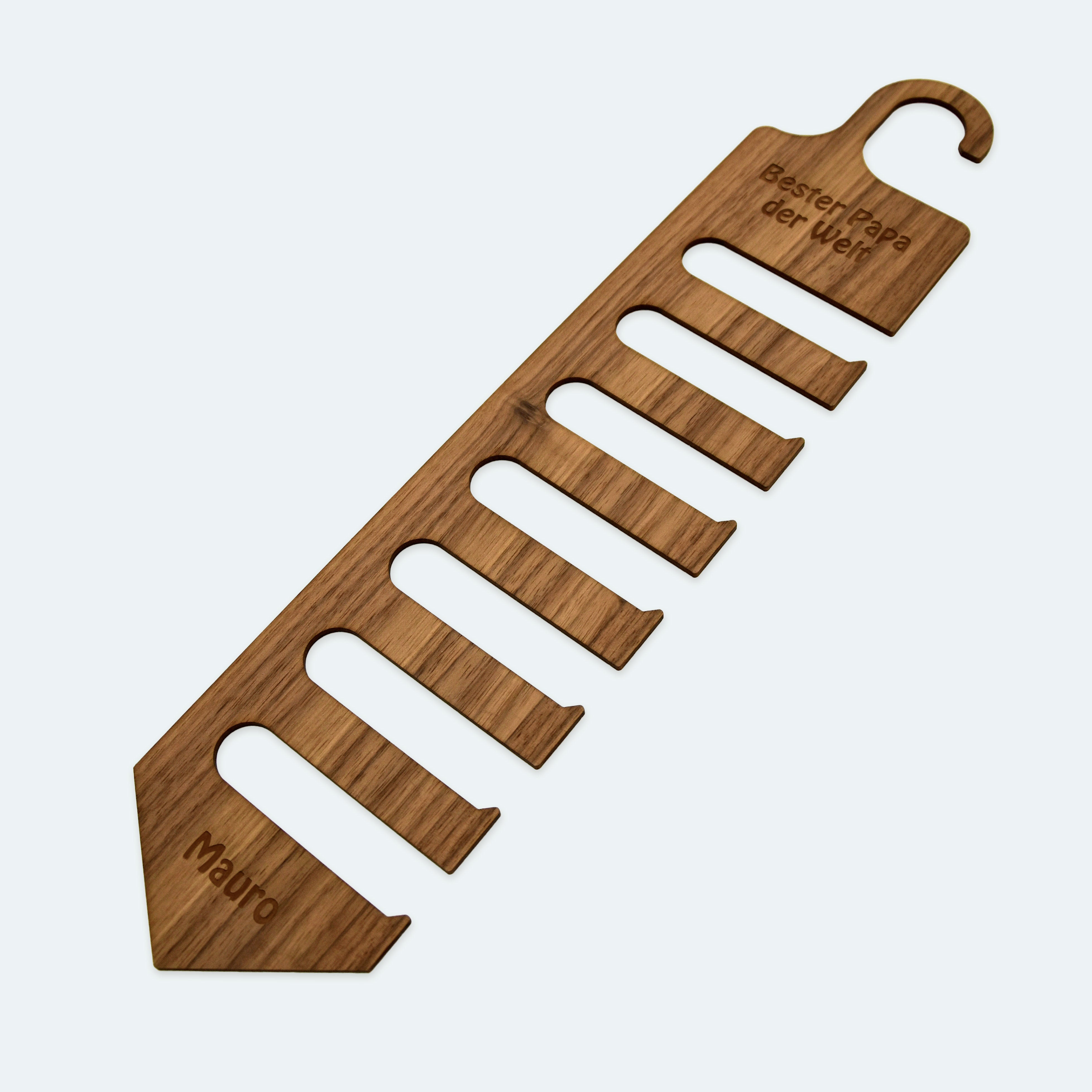 Wir gravieren den Krawattenbügel aus echtem Eichen-, Kirsch- oder Walnussholz ganz nach Ihren Wünschen – sei es mit einer persönlichen Widmung oder Ihrem Logo. Der Halter...