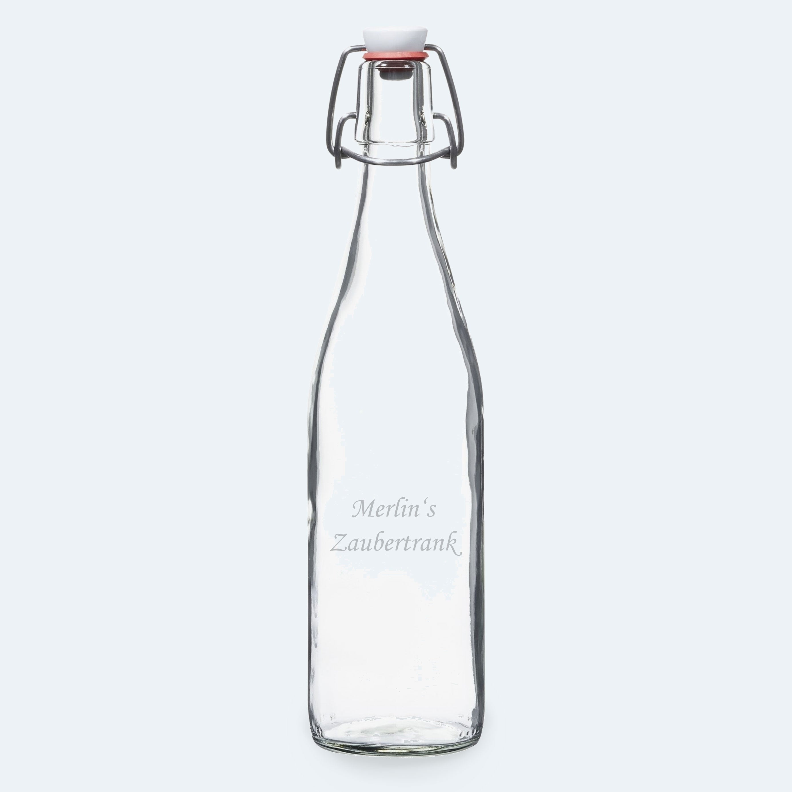 Gestalten Sie Ihre persönliche Bügelflasche mit einer Gravur aus Text, Motiv oder Logo. Die abrieb- und wasserfeste Gravur bleibt dauerhaft erhalten. Die 5 dl Glasflasche mit...
