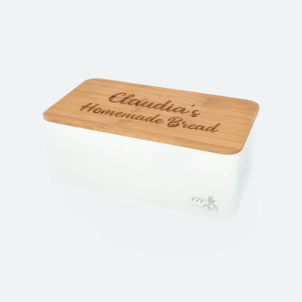 Mit dem Laib und Seele Brotkasten von Birkmann bleibt Brot länger frisch. Die hochwertige, weisse Metallbox schützt vor dem Austrocknen.Eine individuelle Gravur auf dem Bambusdeckel, zum...