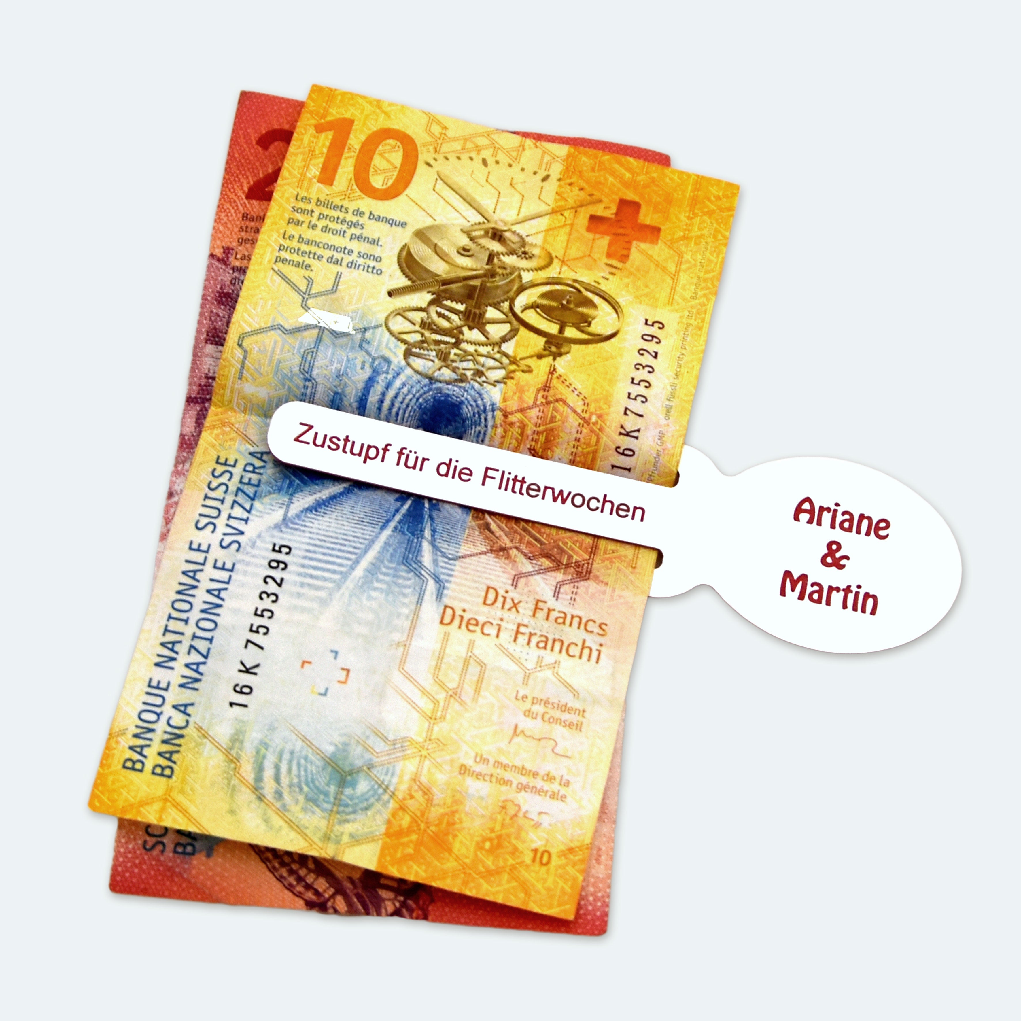 Die Geldscheinklammer mit individueller Gravur ist eine originelle Möglichkeit, Geldgeschenke oder auch Gutscheine zu überreichen – sei es zum Geburtstag oder zur Hochzeit. Die Klammer aus...