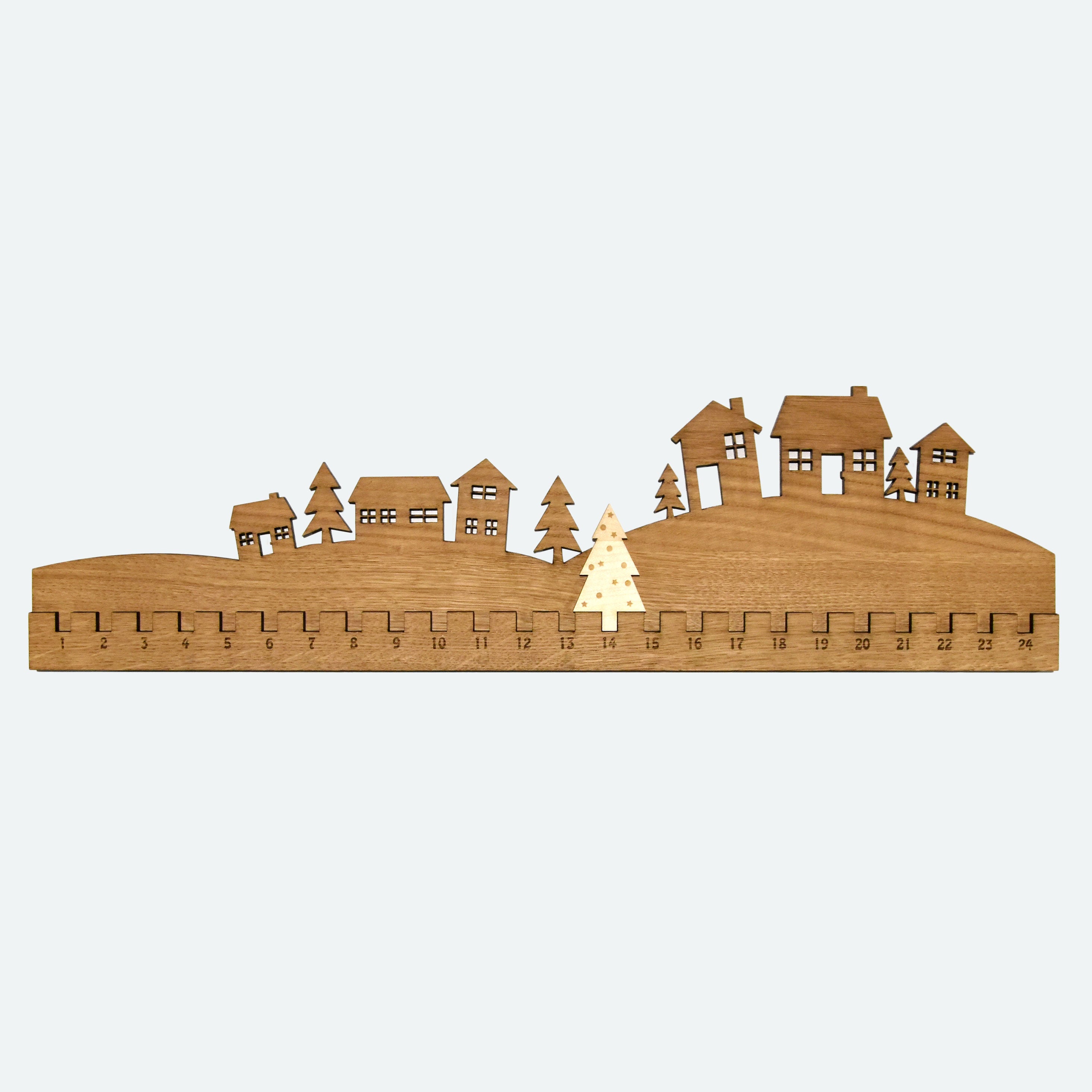 Der Countdown läuft! Jeder Tag rückt die Tanne dem Weihnachtstag näher und macht das Warten für Kinder und Erwachsene leichter. Der Adventskalender aus Ahorn- und Eichenholz...