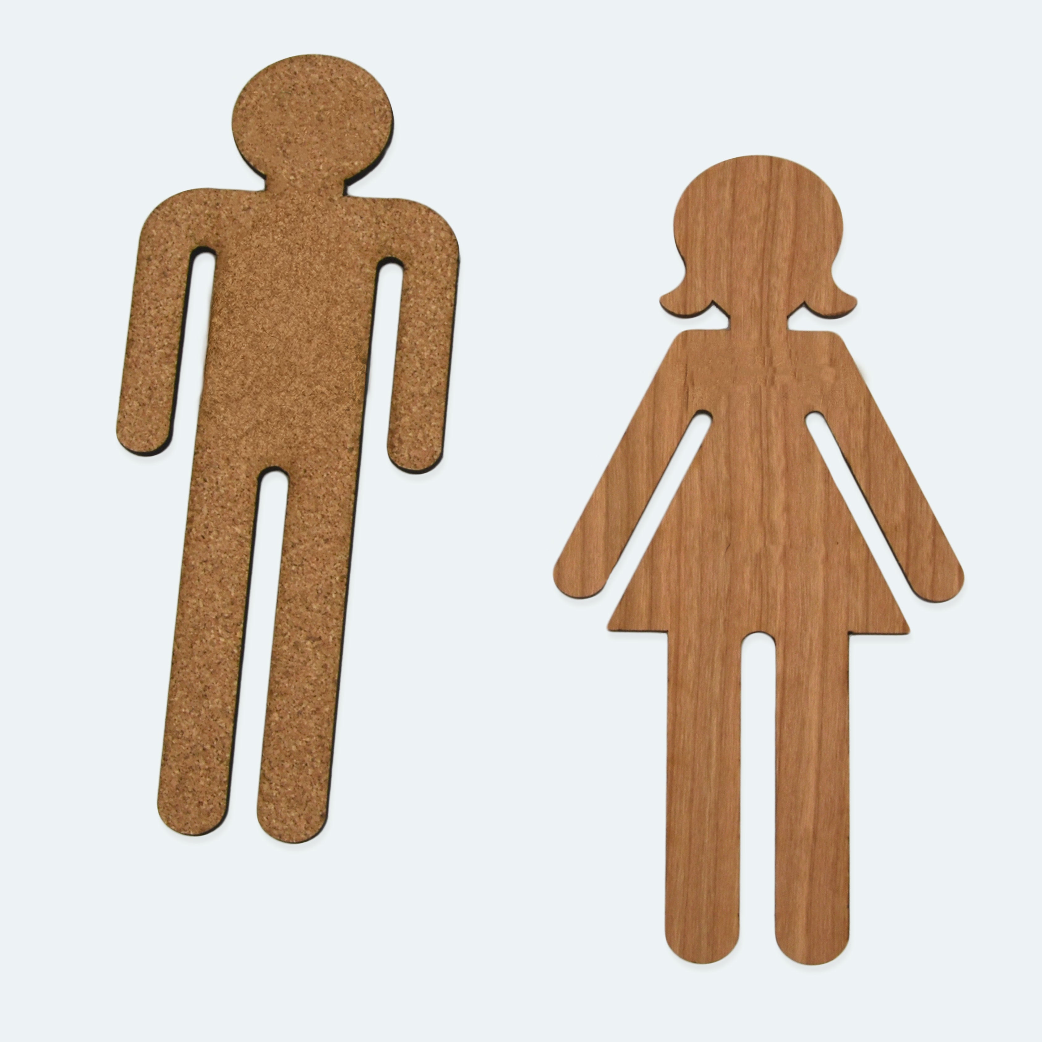 Die Männchen und Weibchen Piktogramme aus natürlichem Material – wahlweise aus edlem Echtholzfurnier oder Kork versprühen eine heimelige Note und sind perfekt zur Kennzeichung von Toiletten...