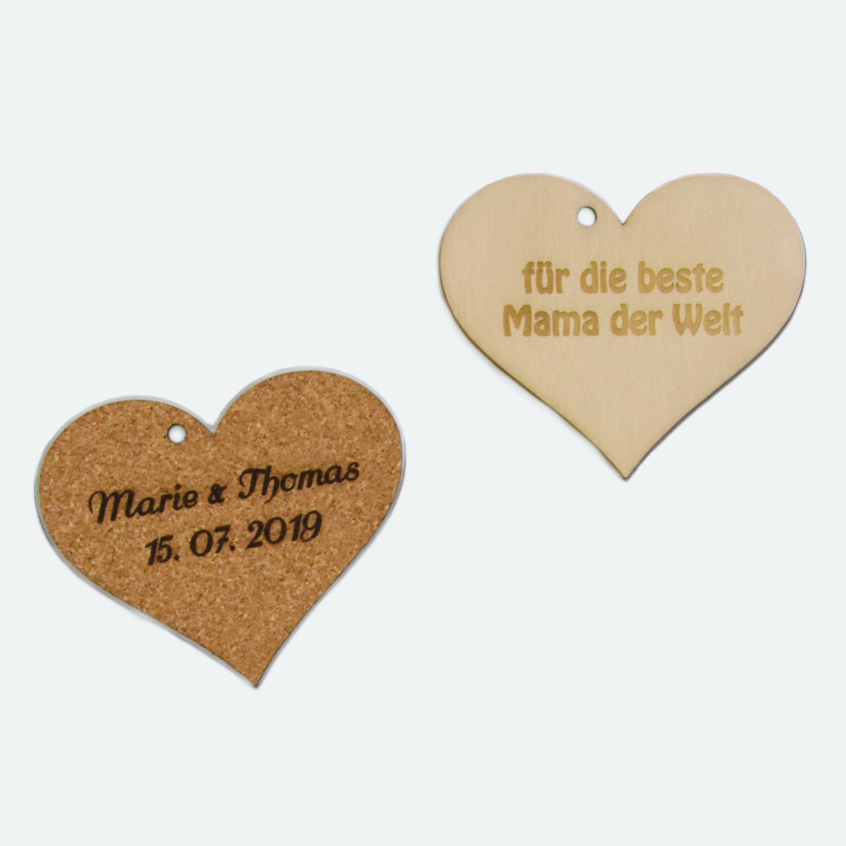 Die Herzanhänger mit Ihrem Wunschtext sind liebevoll gestaltete Geschenkanhänger mit persönlicher Note. Wahlweise aus natürlichem Kork oder Holz gefertigt, eignen sie sich perfekt für besondere Anlässe...