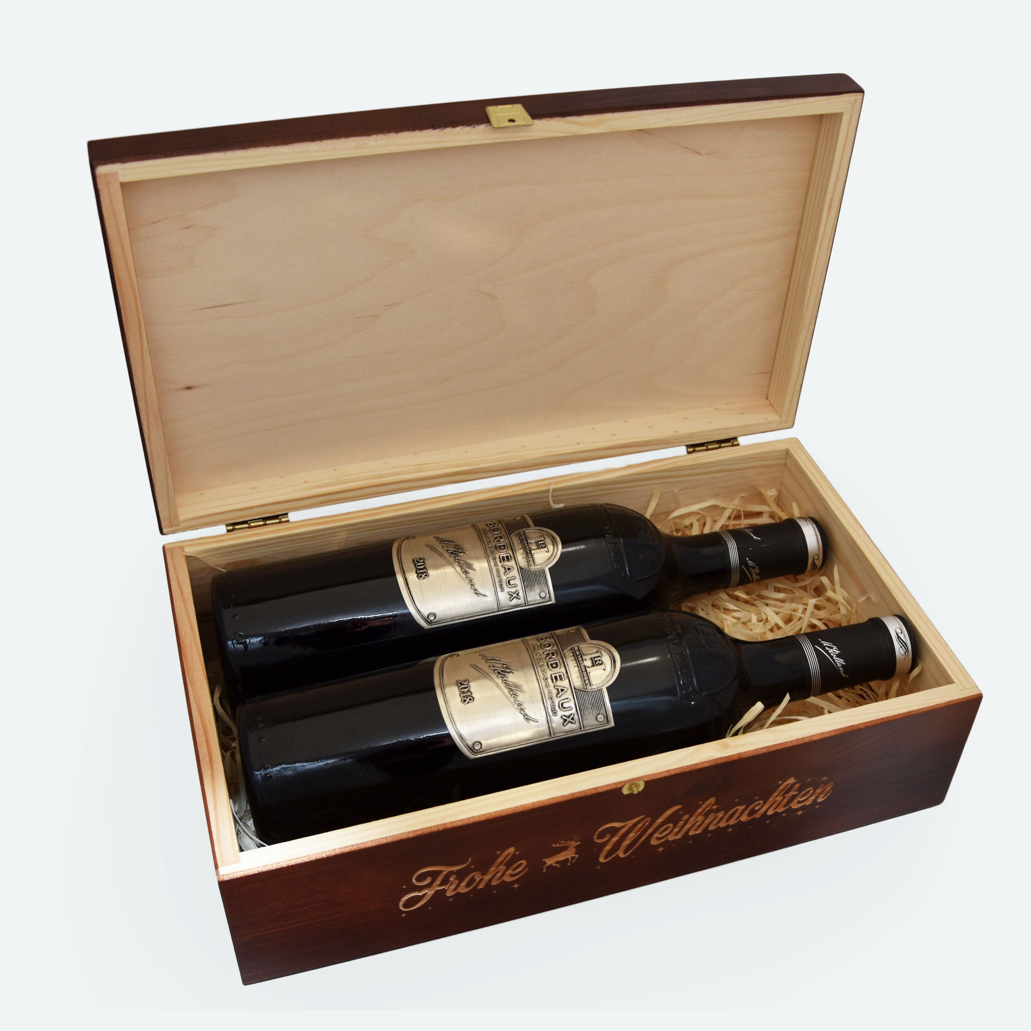 Mit persönlicher Gravur wird unser weihnachtliches Weingeschenk zu etwas ganz Besonderem. Wählen Sie aus verschiedenen Flaschen – wir gravieren jede individuell mit Ihrem Wunschtext. Auf Anfrage...
