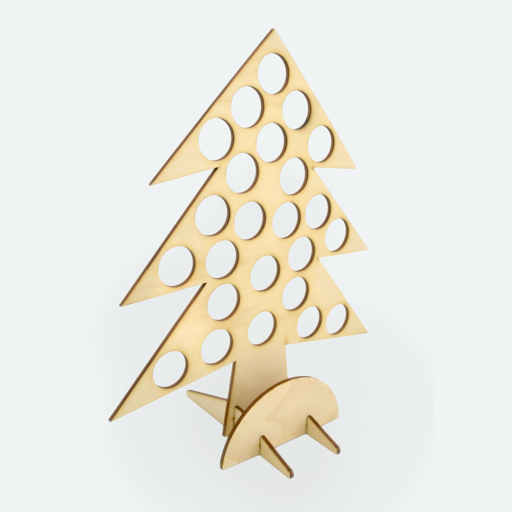 Der Weihnachtsbaum aus Pappelholz bietet Platz für 24 Schokokugeln (z. B. Lindor) und ist eine wunderschöne Weihnachtsdekoration. Er kann als Weihnachtsbaum-Ersatz, Deko oder Adventskalender genutzt werden.